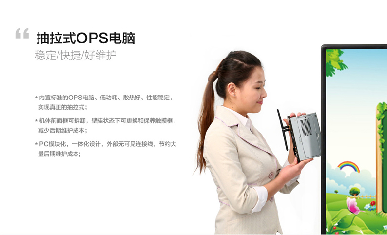 4、其外觀以拉絲烤漆顯得更加華麗,重量不超過70kg,機身超薄僅105mm,且待機功耗僅3W,是一款既時尚又低碳環保的電子白板。