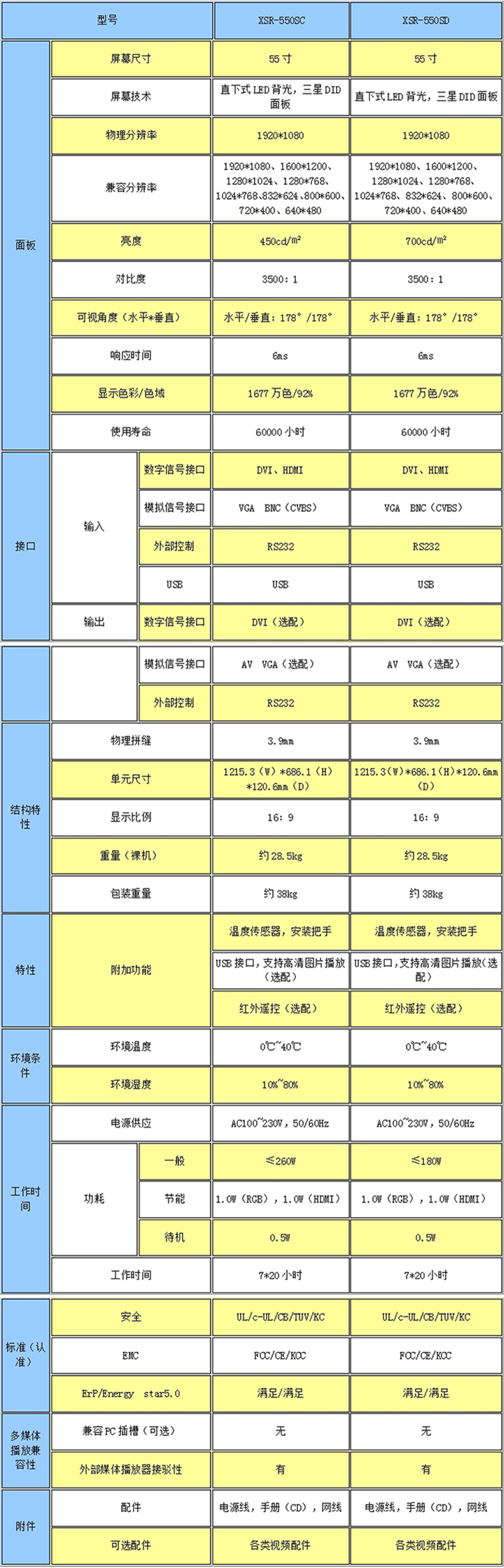 新視銳55寸超窄邊3.5mm拼縫液晶拼接單元采用三星原裝工業級DID液晶屏,采用先進的密集型LED光源背光系統,背光色彩還原度好,圖像逼真,點狀超密集分布,背光亮度均勻。采用高裕量的電子元器件,獨有智能色彩 校正技術,令色彩更加亮麗自然采用先進的UV2A液晶晶體排布技術:亮場明亮、節能、超高光能效、暗場無漏光。超高對比度,6ms響應速度,圖像更加流暢。具有節能、環保、無輻射、壽命長、長期使用亮度均勻,背光采用無玻璃材料,安全運輸,面板外殼裝材料堅固,不易破損。液晶顯示單元采用目前先進的背光技術,極大提升了拼接單元顯示效果,具有突出的技術特點。