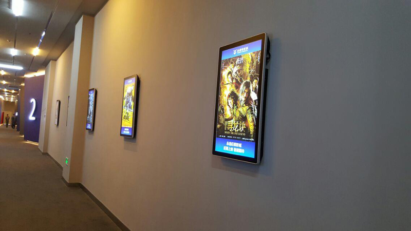 遂寧某電影院,為打造不一樣的看電影氛圍,宣傳新電影及電影上映時間等,新視銳根據客戶需求,采用一批豎式42寸廣告機,安裝在去往各個電影院內部走廊倆邊的墻面上的方案。通過廣告機播放著當日要播放的電影簡介以及大力宣傳即將上映的各種大片,為廣大喜愛電影的青年男女們可以提前做好選擇。