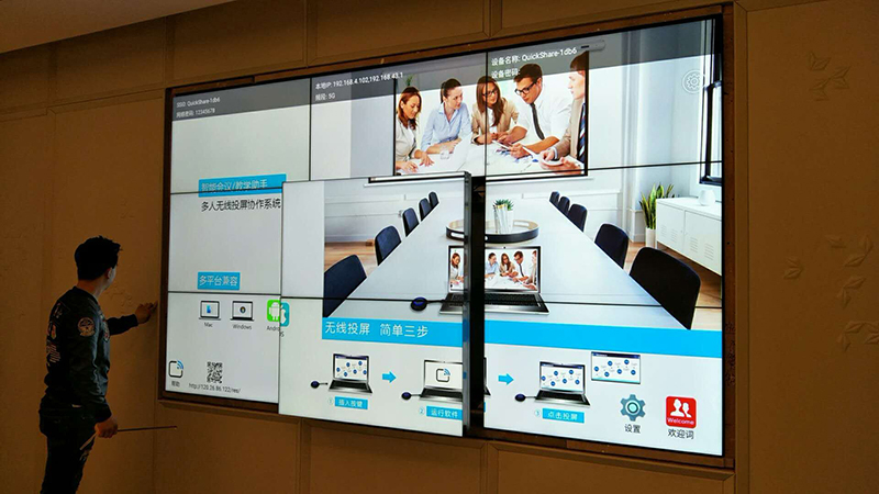 此工程所用材料由深圳市新視銳有限公司(m.defengshun.com)獨家承制,其中包括: 液壓式前維護壁掛架,1進16出高清HDMI分配器,一線品牌HDMI工程信號線材,控制線材,電源線,三星46寸超窄邊3.5mm拼縫液晶拼接單元,無線投屏系統組件等。