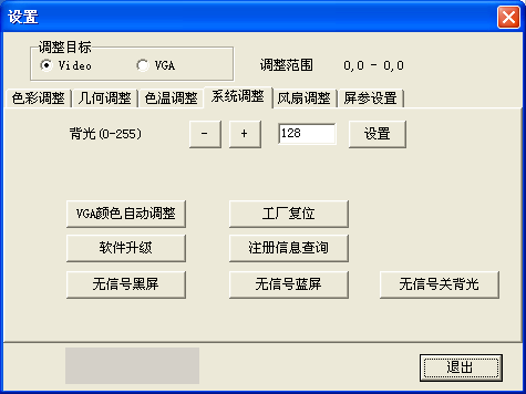 在本菜單里,有Video和VGA兩個選項,在設置時選擇不同的信號源進行設置